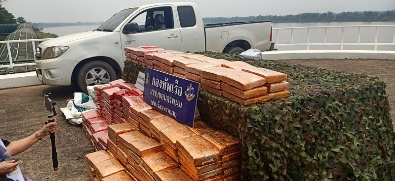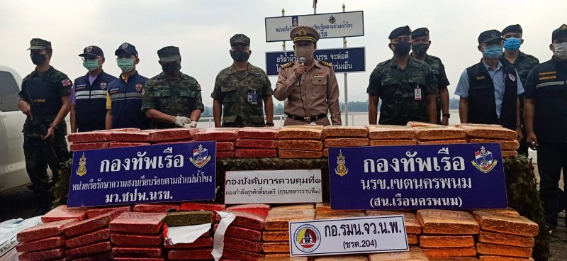 นครพนม- วันจันทร์ที่ ๔ พฤษภาคม ๒๕๖๓ เวลา ๑๓.๐๐ น. นขร.นครพนพ แถลงข่าวตรวจยึดยาเสพติด พร้อมรถยนต์หน่วยเรือรักษาความสงบเรียบร้อยตามลำแม่น้ำโขง