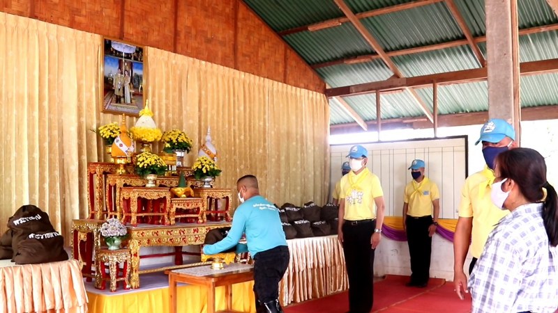 วันที่ 4 พฤษภาคม 2563 ที่โครงการฟาร์มตัวอย่างตามแนวทางพระราชดำริ บ้านทางหลวง ตำบลบ้านแก้ง อำเภอนาแก จังหวัดนครพนม นายสยาม ศิริมงคล ผู้ว่าราชการจังหวัดนครพนม นำคณะหัวหน้าราชการ จิตอาสา 904 ประชาชนจิตอาสา และประชาชนประกอบพิธีเปิดกรวยกระทงดอกไม้ ถวายเครื่องราชสักการะและถวายความเคารพเบื้องหน้าพระบรมฉายาลักษณ์ พระบาทสมเด็จพระเจ้าอยู่หัวฯและสมเด็จพระนางเจ้าฯ พระบรมราชชินี และประกอบพิธีมอบถุงพระราชทานโครงการฟาร์มตัวอย่างต้านภัยโควิด-19 ที่พระบาทสมเด็จพระเจ้าอยู่หัวฯและสมเด็จพระนางเจ้าฯ พระบรมราชชินี ได้ทรงมุ่งหวังให้ประชาชนที่ได้รับผลกระทบจากการเลิกจ้างงานและขาดรายได้จากการแพร่ระบาดของเชื้อไวรัสโคโรนา 2019 ให้มีรายได้และพึ่งพาตนเอง รวมทั้งมีความรู้จากการทำเกษตรทฤษฎีใหม่ มีแหล่งอาหารที่ปลอดภัยให้กับตนเอง ครอบครัว และชุมชนอย่างถาวร และยั่งยืน อีกทั้งเพื่อให้ฟาร์มตัวอย่างมีการพัฒนาผลิตผลทางการเกษตร เป็นสถานที่ศึกษาดูงานและให้ความรู้ด้านการเกษตร การปศุสัตว์ที่ถูกต้องแก่ประชาชน