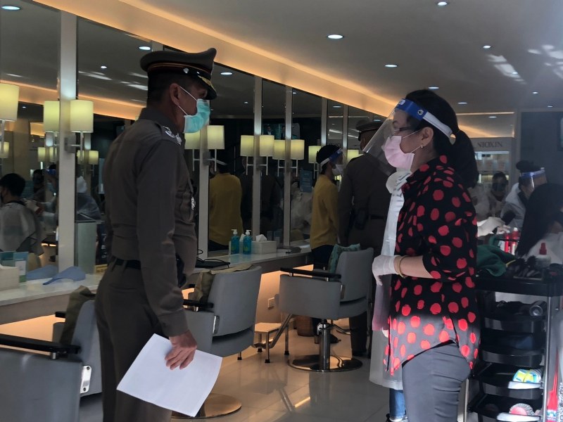 น.1 ตรวจสถานที่ ที่ได้รับการผ่อนคลายข้อกำหนดฯ โดยตรวจร้านเสริมสวย ร้านตัดผม บริเวณสยามสแควร์