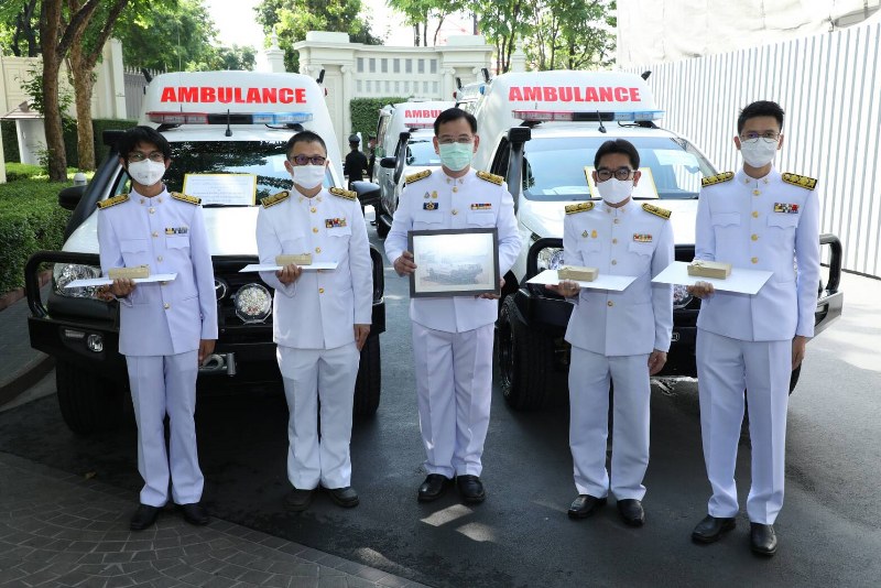 วันนี้ 5 พฤษภาคม 2563 เวลา 09.00 น. ที่อาคาร บก. หน่วยราชการในพระองค์ อาคาร 2 พระที่นั่งอัมพรสถาน พระราชวังดุสิต พระบาทสมเด็จพระเจ้าอยู่หัว และสมเด็จพระนางเจ้า ฯ พระบรมราชินี ทรงพระกรุณาโปรดเกล้าโปรดกระหม่อมพระราชทาน รถพยาบาลกู้ชีพฉุก เฉิน พร้อมอุปกรณ์ทางการแพทย์และอุปกรณ์สื่อสาร จำนวน 8 คัน ให้แก่