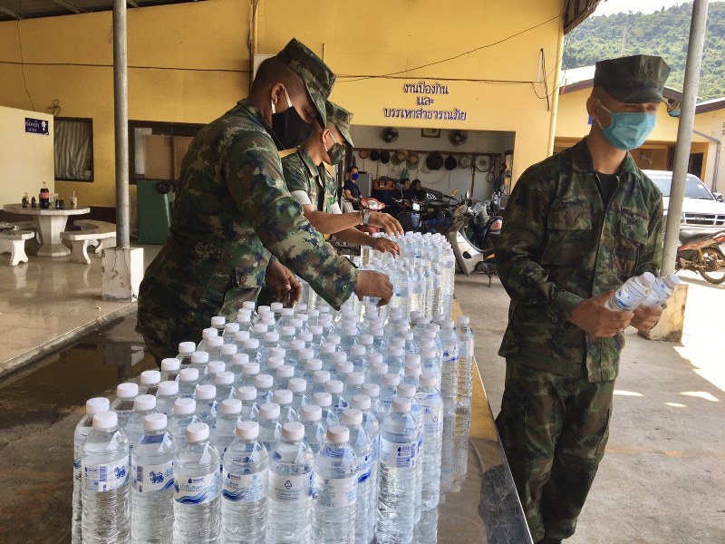 ตราด/คลองใหญ่ ต.หาดเล็ก หน่วยเฉพาะกิจนาวิกโยธิน 182 บ้านหาดเล็กร่วมกับเทศบาลตําบลหาดเล็ก จัดข้าวกล่องนํ้าดื่มจำนวน 200 กล่อง และทางเทศบาลตําหาดเล็กแจกหน้ากากอนามัย สู้ภัยโควิด-19