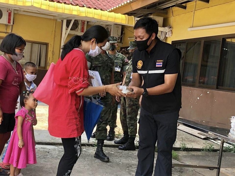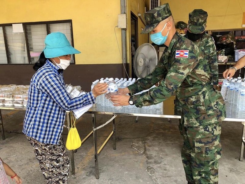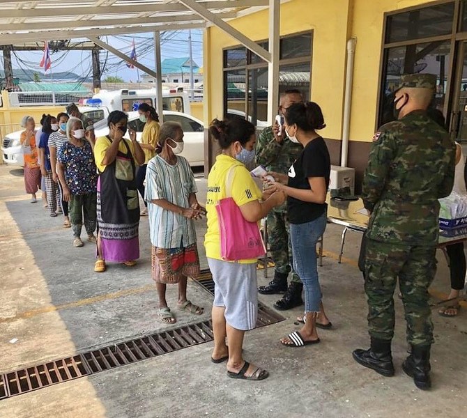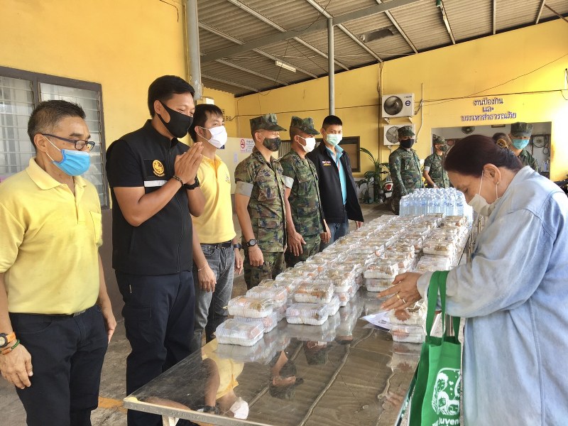 ซึ่งมีประชาชนที่สัญจรผ่านไปมาแวะมารับอาหารมื้อเที่ยงเพื่อนำไปทานกับครอบครัวที่บ้านได้ โดยมีเจ้าหน้าที่ทหารกํานันผู้ใหญ่บ้านและเจ้าหน้าที่เทศบาลตําบลหาดเล็กคอยให้บริการแจกจ่ายให้กับประชาชนในพื้นที่ตําบลหาดเล็กและคอยอำนวยความสะดวกและจัดการการเว้นระยะห่างในการเข้าคิวเพื่อรอรับการแจก
