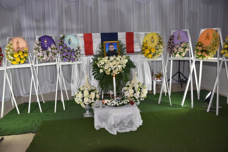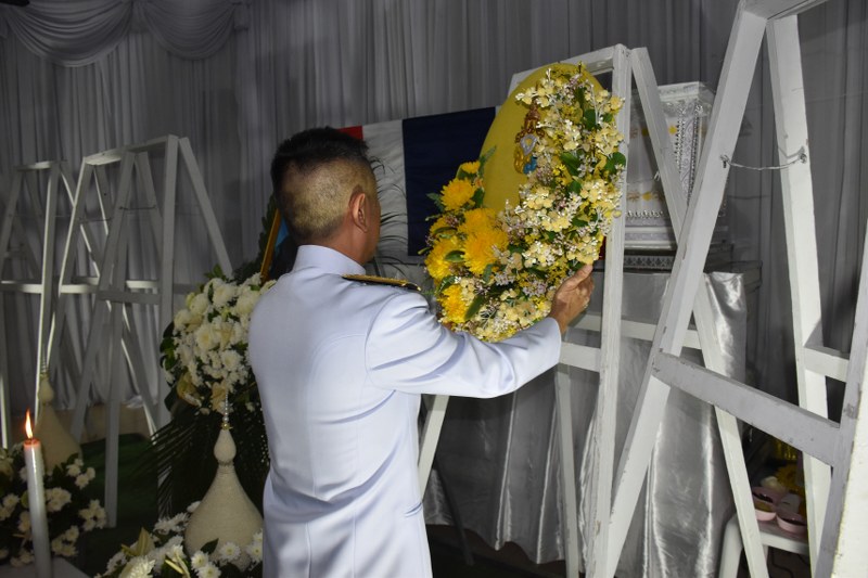 พระบาทสมเด็จพระเจ้าอยู่หัว ทรงพระกรุณาโปรดเกล้าฯ ให้ ผวจ.นครศรีธรรมราช เชิญพวงมาลาหลวงและพวงมาลาของพระบรมวงศานุวงศ์วางหน้าหีบศพ อาสาสมัครทหารพราน สิทธิชัย ภักดีพันธ์