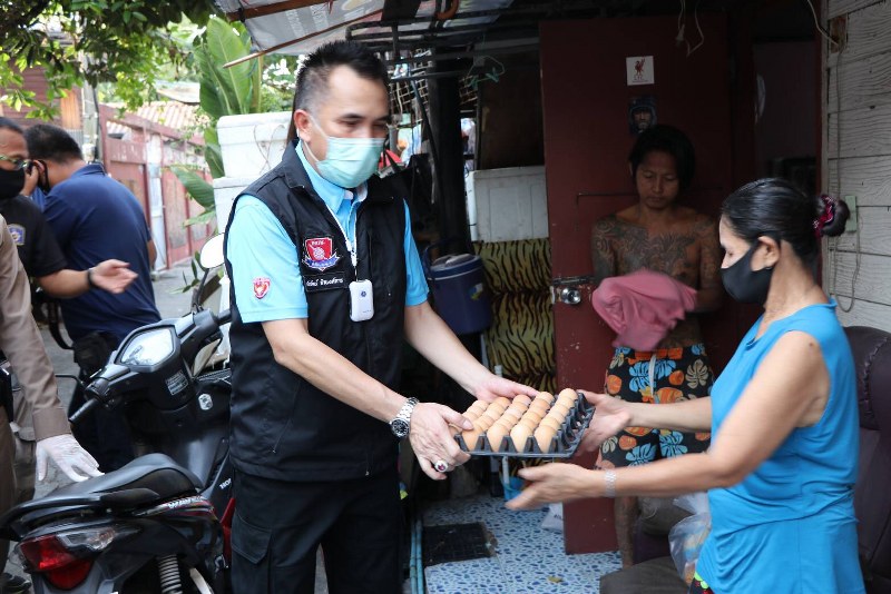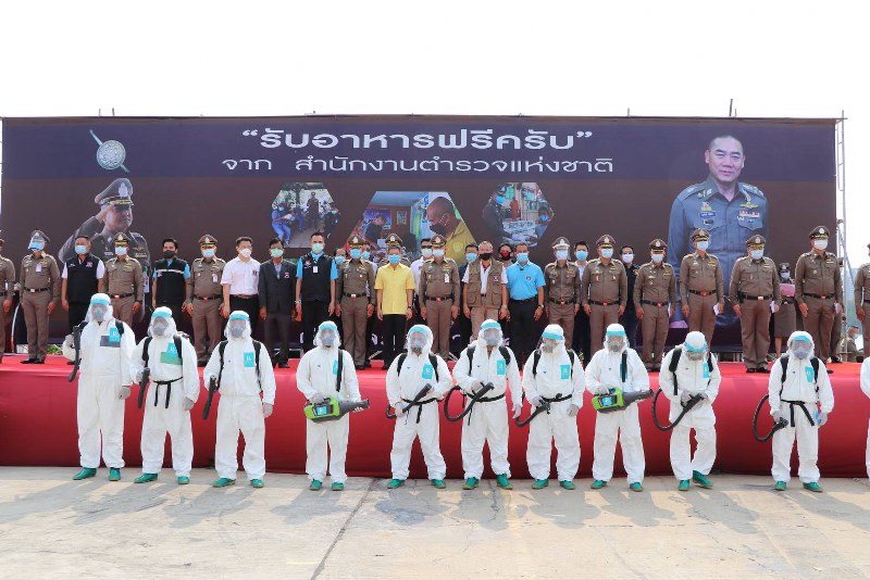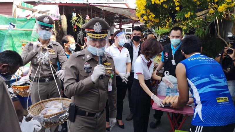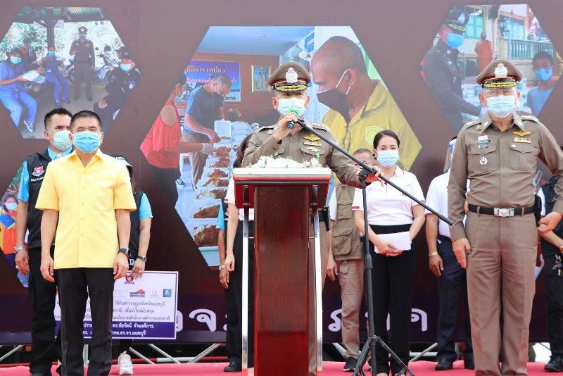 นนทบุรี ผบช.ภ.1 เปิดโครงการ “รับอาหารฟรีครับ” นำข้าวกล่องแจกชาวบ้านชุมชนวัดทินกร