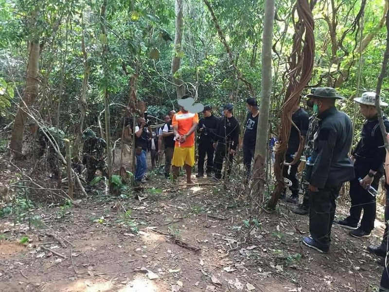 จากนั้นได้นำตัวผู้ต้องหาลงเรือเดินทางเข้าไปในป่าดังกล่าวเพื่อนำอาวุธปืนที่ซุกซ่อนอยู่บนยอดเขามาประกอบการดำเนินคดี ทั้งนี้ได้มีญาติของผู้ต้องหาเดินทางมาดูการแถลงข่าวที่สถานีตำรวจภูธรลำสนธิเป็นจำนวนมาก