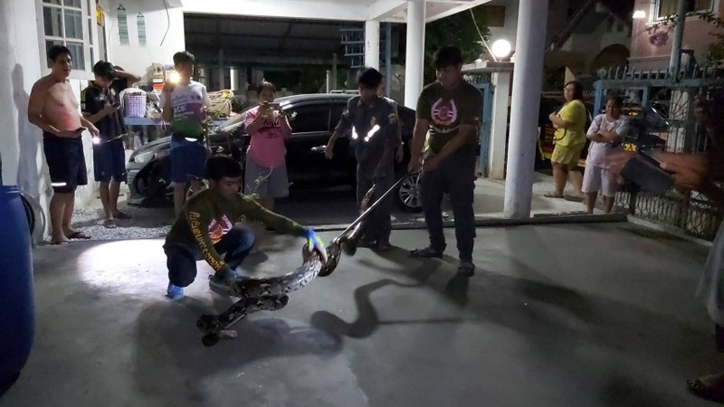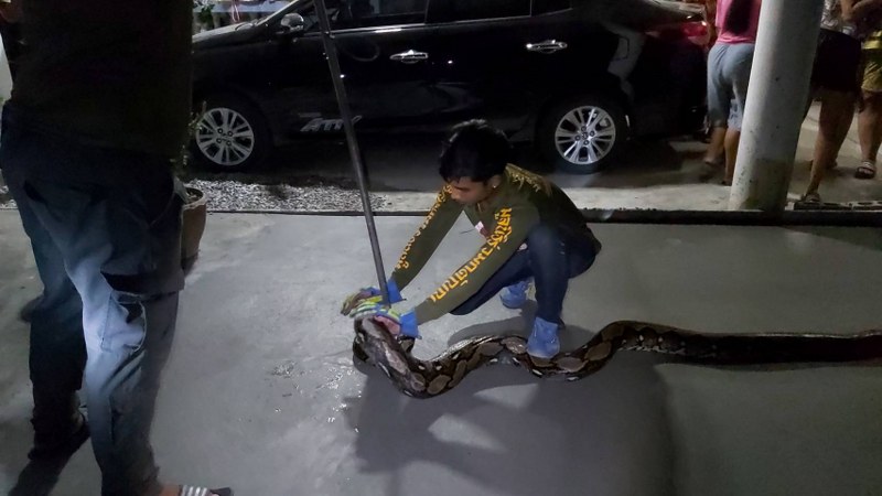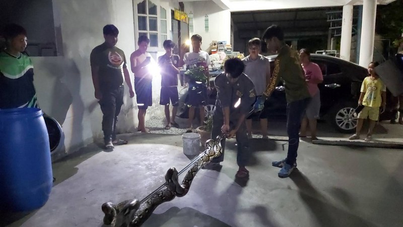 สุโขทัย-งูเหลือมหนักกว่า 60 กิโล ติดเคอร์ฟิว ต้องเรียกกู้ภัยช่วยจับปล่อยคืนสู่ธรรมชาติ