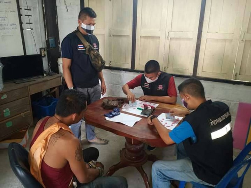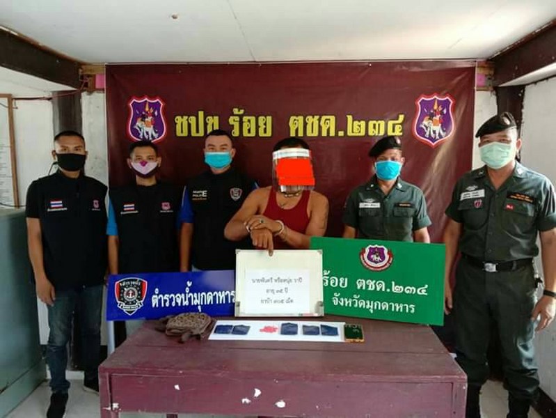 กระทั่งเวลาประมาณ 04.30 น. (7 พ.ค.63 ) เจ้าหน้าที่ชุดจับกุมได้เดินทางไปถึงที่เกิดเหตุ และได้กระจายกําลังเข้าตรวจสอบบริเวณกระท่อมดังกล่าว พบชายคนหนึ่งนั่งอยู่แคร่ใต้กระท่อมนา เจ้าหน้าที่จึงได้ใช้ไฟส่องไปที่ชายคนดังกล่าวพร้อมกับแสดงตัวเป็นเจ้าหน้าที่เพื่อจะสอบถาม แต่เมื่อชายคนดังกล่าวเห็นเจ้าหน้าที่ได้ลุกขึ้นขยับตัวจะวิ่งหลบหนี เจ้าหน้าที่จึงได้เข้าควบคุมตัวไว้ จากการสอบถามทราบชื่อ นายพันตรี หรือหนุ่ย วาปี อายุ 35 ปี ที่อยู่ 12 หมู่ 8 ตำบลนาอุดม อำเภอนิคมคําสร้อย จังหวัดมุกดาหาร เจ้าหน้าที่จึงได้ขอตรวจค้นตัวนายพันตรีฯ