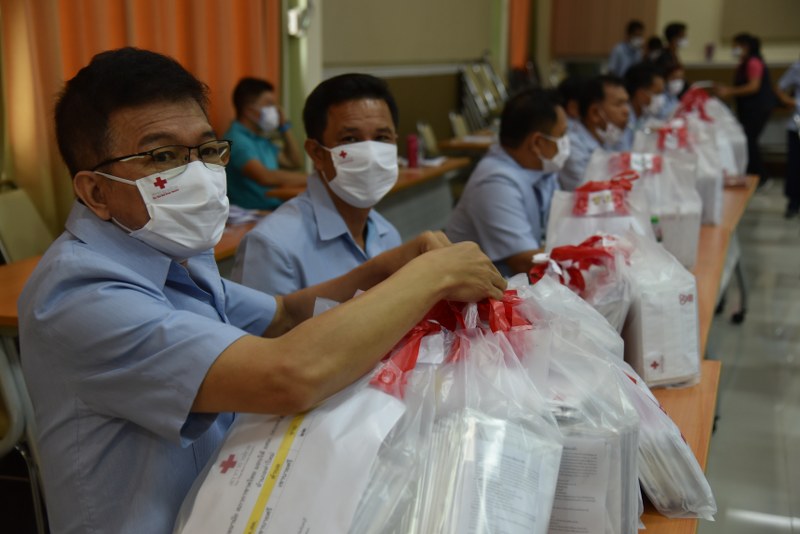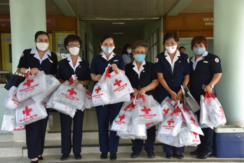 สำนักงานเหล่ากาชาดจังหวัดจันทบุรี มอบหน้ากากผ้ามัสลินแก่อาสาสมัครสาธารณสุขหมู่บ้านเพื่อใช้ปฏิบัติงานในพื้นที่ป้องกันการแพร่ระบาดของโรคโควิด-19 ในชุมชน/เตรียมผลิตต่ออีก 80,000 ชิ้น เพื่อแจกประชาชนผู้ยากไร้ ด้อยโอกาส ในลำดับต่อไป