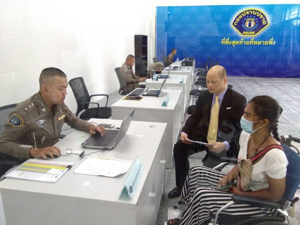 วันนี้ วันจันทร์ที่ 1 ก.ค.62 เวลา 09.30 น. ที่กองบังคับการปราบปราม : นายรัชพล ศิริสาคร ประธานชมรมสนับสนุนการต่อสู้เพื่อความยุติธรรม พา น.ส.นิภาพร คงมีสุข หรือ น้องอาย อายุ 23 ปี อยู่บ้านเลขที่ 307/4 หมู่ 10 ต.ในคลองบางปลากด อ.พระสมุทรเจดีย์ จ.สมุทรปราการ เดินทางเข้าพบ ร้อยตำรวจเอก พิชานน ปลิ่มสุด รองสารวัตรสอบกองกำกับการ 1 กองบังคับการปราบปราม (รองสว.สอบสวน กก.1 บก.ป.) เพื่อให้ช่วยเร่งรัดติดตามจับกุมตัวคนร้ายที่ก่อเหตุยิง น.ส.นิภาพรฯ ได้รับบาดเจ็บสาหัสจนกลายเป็นคนพิการนั่งรถวีลแชร์ เหตุเกิดภายในชุมชนหลังโรงเรียนวัดทุ่งครุ เขตทุ่งครุ กทม. เมื่อวันที่ 17 เม.ย.55 แต่จนถึงขณะนี้เจ้าหน้าที่ตำรวจ สน.ทุ่งครุ เจ้าของคดียังไม่สามารถจับกุมคนร้ายมาดำเนินคดีได้ทั้งๆ ที่เวลาผ่านมากว่า 7 ปี