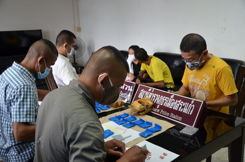 ต่อมานายที ได้มาถึงที่นัดหมายเจ้าหน้าที่จึงเข้าแสดงตัวเข้าจับกุม ตรวจค้นภายในตัวและในรถไม่พบของพบเสพติด จึงคุมตัวมาตรวจสอบและตรวจค้นที่หน้า สภ.เมืองสระแก้ว และเจ้าหน้าที่ได้ตรวจค้นอย่างละเอียดจนพบของกลางยาบ้า 2 มัด จำนวน 4,000 เม็ด ซุกซ่อนอยู่ในกรองอากาศใต้ฝากระโปรงรถยนต์เก๋ง โตโยต้าวีออส สีบอร์น ทะเบียน กน8243 นครปฐม