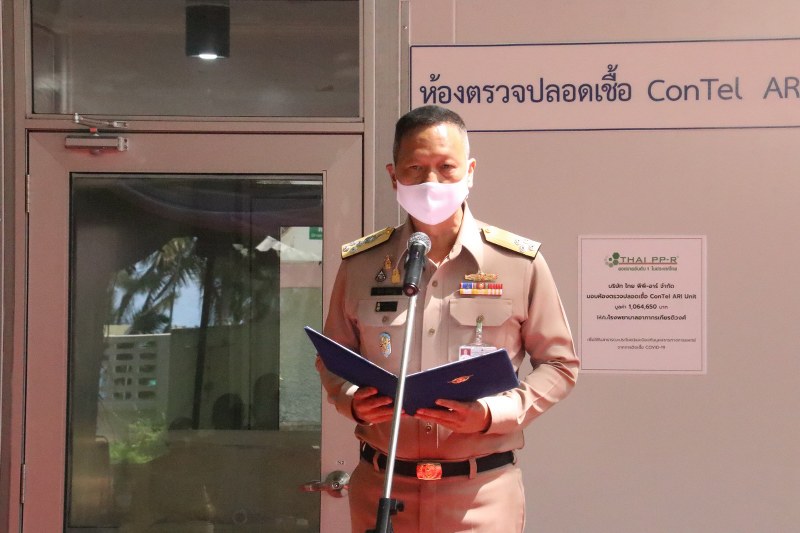 วันนี้ 8 พ.ค.63 ที่โรงพยาบาลอาภากรเกียรติวงศ์ ฐานทัพเรือสัตหีบ อ.สัตหีบ จ.ชลบุรี พลเรือเอก พัชระ พุ่มพิเชฏฐ์ รองผู้บัญชาการทหารสูงสุด มาเป็นประธานในพิธีส่งมอบห้องหัตถการความดันลบ (Negative Pressure) ห้องตรวจเปลอดเชื้อ ConTel ARI Unit ให้กับโรงพยาบาลอาภาเกียรติวงศ์ จากกองบัญชาการกองทัพไทย บริษัท ไทย พีพี-อาร์ จำกัด ซึ่งมีคุณ สุชิน รัตนศิริวิไล ประธาน กรรมการบริหาร ไทย บริษัท ไทย พีพี-อาร์ เพื่อใช้ในสาธาณะประโยชน์และป้องกันบุคลากร ทางการแพทย์ จากการติดเชื้อโควิด -19 โดยมี พลเรือตรี ชลธร สุวรรณกิตติ ผู้อำนวยการ โรงพยาบาลอาภากรเกียรติวงศ์ ฐานทัพเรือสัตหีบ ผู้แทนผู้บัญชาการฐานทัพเรือสัตหีบ คณะนายทหารร่วมในพิธี