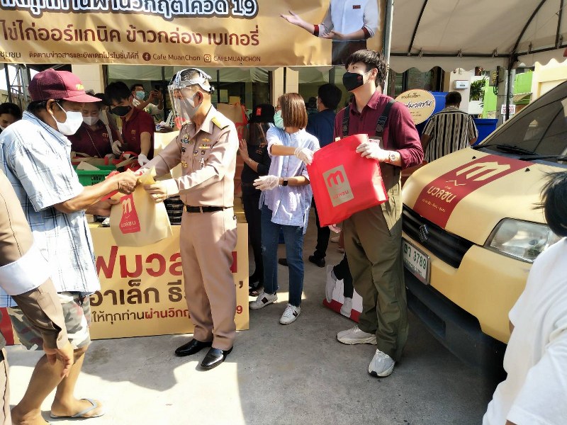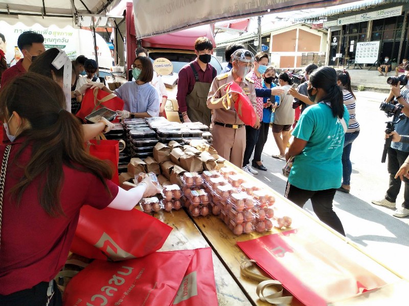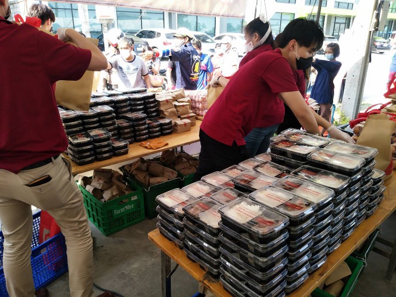 ชมรม นมธ. แจกข้าวกล่อง ไข่ออแกนิค เบเกอรี่ และเครื่องดื่ม “กาแฟมวลชน” 500 ชุด ผู้รับผลกระทบโควิด 19