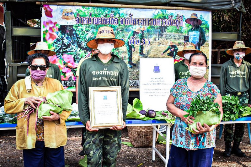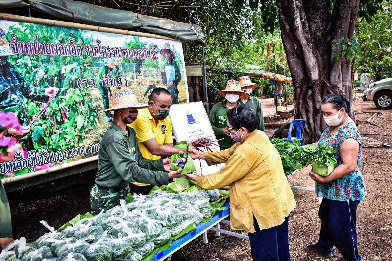 เมื่อวันที่ 8 พฤษภาคม 63 เวลา 16:00 น. พันโท อุทัย นิลเนตร ผู้บังคับกองพันทหารราบที่ 3 กรมทหารราบที่ 3 (ผบ.ร.3 พัน.3 ได้นำกำลังพล นำผลผลิตจาก โครงการทหารพันธุ์ดี ของหน่วยที่ทำการเพาะปลูกที่ศูนย์การเรียนรู้เศษฐกิจพอเพียง ร.3 พัน.3 ออกมาจำหน่ายให้กับกำลังพลพร้อมครอบครัวและพี่น้องประชาชนชุมชนรอบค่าย รวมถึงผู้ที่สัญจรไปมาได้แวะเลือกซื้อผักปลอดสารพิษในราคาถูก เพื่อช่วยเหลือผู้ที่ได้รับผลกระทบจากสถานการณ์การแพร่ระบาดของเชื้อโควิด – 19 ให้ได้รับประทานผักสดที่ปลอดภัย