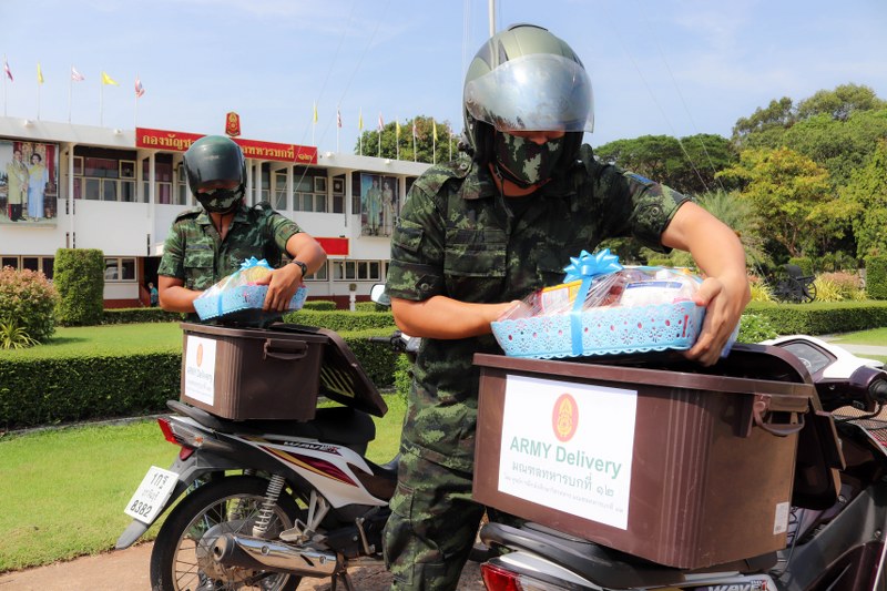 พล.ต.ดิษฐพงษ์ เจริญวงศ์ ผู้บัญชาการมณฑลทหารบกที่ 12 (ผบ.มทบ.12) จัดจัดกำลังพลที่มีความชำนาญการขับจักรยานยนต์ จัดชุดเคลื่อนที่เร็ว “ Army Delivery” ส่งเครื่องอุปโภค-บริโภค เข้าถึงความเดือนร้อนพี่น้องประชาชน ในชุมชน