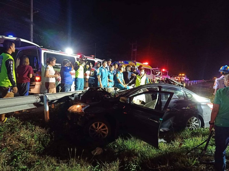 ที่เกิดเหตุที่หน้าบริษัทสหฟาร์ม พบรถยนต์บรรทุก 6 ล้อ ไม่ทราบยี่ห้อ สีขาว หมายเลขทะเบียน 64-5759 ไม่ทราบหมวดจังหวัด จอดอยู่หน้าทางเข้าบริษัทฯ ท้ายรถด้านขวามีร่องรอยการชนจนพังยุบ เสียงไก่ร้องระงม ที่เกาะกลางถนนพบรถยนต์เก๋ง ยี่ห้อ นิสสัน สีดำ หมายเลขทะเบียน ญต-1428 กรุงเทพมหานคร ในสภาพพังยับเยินหลังคารถเปิด ที่ตอนหน้ารถพบศพ ด.ต. ไสว ต่อนคำสนธ์ อายุ 45 ปี เสียชีวิตคาพวงมาลัย กะโหลกศรีษะเปิด ที่เบาะนั่งข้างซ้ายพบร่าง น.ส.ยุพา สันวดี อายุ 40 ปี ได้รับบาดเจ็บที่ศรีษะ อาการสาหัส หายใจรวยริน เจ้าหน้าที่กู้ภัยฯ นำร่างออกมาจากซากรถส่งต่อรถกู้ชีพนำส่ง รพ.ชัยบาดาล