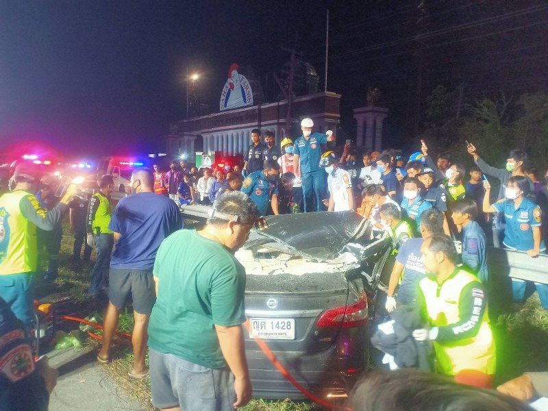 วันที่ 9 พ.ค. 63 ร.ต.อ.ชาญุวุฒิ เรืองจาบ รอง สว.(สอบสวน) สภ.ม่วงค่อม อ.ชัยบาดาล จ.ลพบุรี ได้รับแจ้งเกิดอุบัติเหตุรถยนต์เก๋งชนท้ายรถบรรทุกไก่สด ที่ถนนสายสระบุรี-หล่มสัก หมู่ที่ 5 ต.ห้วยหิน หน้าบริษัทสหฟาร์ม ในที่เกิดเหตุมีผู้เสียชีวิตและผู้ได้รับบาดเจ็บสาหัส จึงได้ประสานแพทย์เวรฉุกเฉิน รพ.ชัยบาดาล มูลนิธิพุทไธสวรรย์ ลพบุรี และมูลนิธิพุทธธรรมสงเคราะห์ลำนารายณ์(พ้งไล้16) รุดเดินทางไปยังจุดที่เกิดเหตุ