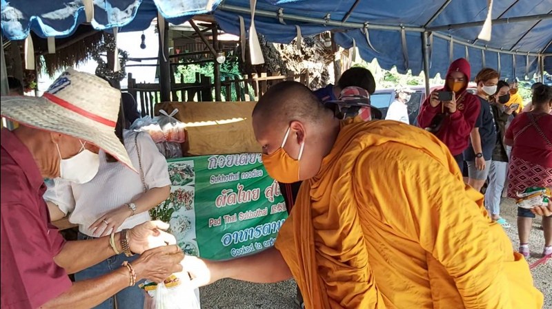 คณะสงฆ์อำเภอเมืองจังหวัดสุโขทัย จัดตั้งโรงทานสนองพระบัญชาสมเด็จพระสังฆราช นำพระและญาติโยม แจกจ่ายอาหารให้กับประชาชนเพื่อเป็นกำลังใจคราวประสบโรคโควิด-19