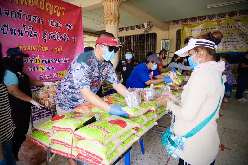 นำ้ใจห้างทองปัญญาบ้านอำเภอ แจกข้าวสาร 1,300 ชุด ช่วยพี่น้องนาจอมเทียน สัตหีบ ช่วงวิกฤติโควิด-19