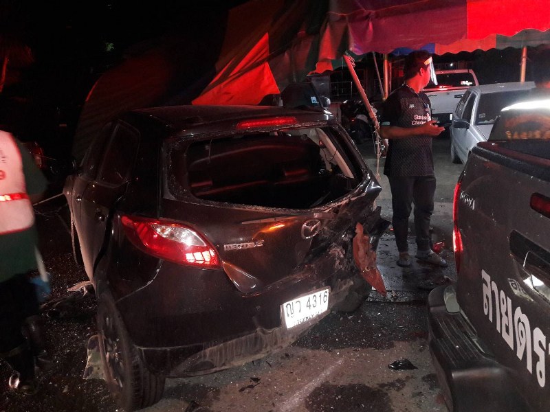 ที่เกิดเหตุบนถนนสายสระบุรี-หล่มสัก ทางแยกซอย12 พบว่ามีรถจำนวนหลายคันได้รับความเสียหาย อีกทั้งสถานที่ด่านตรวจ เต้นท์ โต๊ะ เก้าอี้ ล้มระเนระนาด มีเจ้าหน้าที่ตำรวจได้รับบาดเจ็บจำนวน 2 ราย และภายในรถยนต์เก๋ง ยี่ห้อ ไดอัทสุ มีร่า สีม่วง หมายเลขทะเบียน กบ-4620 ลพบุรี มีผู้ได้รับบาดเจ็บสาหัส ติดคาซากรถอยู่ ไม่สามารถช่วยเหลือออกมาได้ เจ้าหน้าที่ต้องใช้อุปกรณ์ในการตัดถ่างนำร่างออกมาได้ด้วยอาการสาหัส หมดสติส่ง รพ.