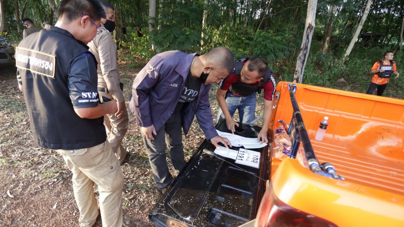 ขณะเดียวกัน ทางด้าน พล.ต.ต.ธนชาติ รอดคลองตัน ผู้บังคับการตำรวจภูธรจังหวัดนคร พนม สั่งการให้ พ.ต.อ.ธีทัต อิ่มทั่ว รอง ผบก.ภ.จว.นครพนม ร่วมกับ พ.ต.อ.จตุรงค์ มหิทธิโชติ ผกก.สืบสวนนครพนม ประสานงานร่วมกับ ชุดสืบสวน สภ.เขาวง จ.กาฬสินธุ์ ลงพื้นที่ตรวจสอบเก็บหลักฐาน พิมพ์ลายนิ้วมือ ภายในรถยนต์ตราโล่ของตำรวจ สภ.เขาวง รวมถึงรถยนต์กระบะของผู้ก่อเหตุ เป็นรถยนต์กระบะ ยี่ห้ออีซูซุ สีส้ม ทะเบียน 7 กฎ 431 กทม. สภาพแต่งซิ่ง โดยตรวจค้นพบยาบ้าซุกซ่อนภายในรถ 2 มัด จำนวน 4,000 เม็ด เพื่อเร่งรวบรวมหลักฐาน สืบสวนขยายผลติดตามจับกุมผู้กระทำผิดมาดำเนินคดี เบื้องต้นทางตำรวจได้เรียกตัวผู้ต้องสงสัยที่เข้าข่ายเชื่อมโยงจากเอกสารหลักฐานการครอบครองรถยนต์คันดังกล่าวที่ระบุชื่อ นายพจน์ สุขะรี อายุ 35 ปี ชาวบ้านโคกกลาง ต.ปลาปาก อ.ปลาปาก จ.นคร พนม ซึ่งทางตำรวจได้เรียกตัวมาสอบสวน โดยเจ้าตัวระบุว่าได้ขายรถยนต์คันดังกล่าวไป เมื่อหลายเดือนที่ผ่านมา ซึ่งเป็นการขายดาวน์ อ้างว่าคนซื้อรับไปผ่อนชำระต่อ คือ นายอ็อด ชาว ต.นาเลียง อ.นาแก จ.นครพนม แต่ยังไม่มีการโอนกรรมสิทธิ์ ยืนยันไม่มีส่วนเกี่ยวข้อง ปกติทำงานอยู่ต่างจังหวัด พึ่งกลับมาบ้านเมื่อเดือนที่ผ่านมา ทำให้มีเอกสารหลักฐานการครอบครอง อยู่ในรถ พร้อมขอความเป็นธรรมกับตำรวจ