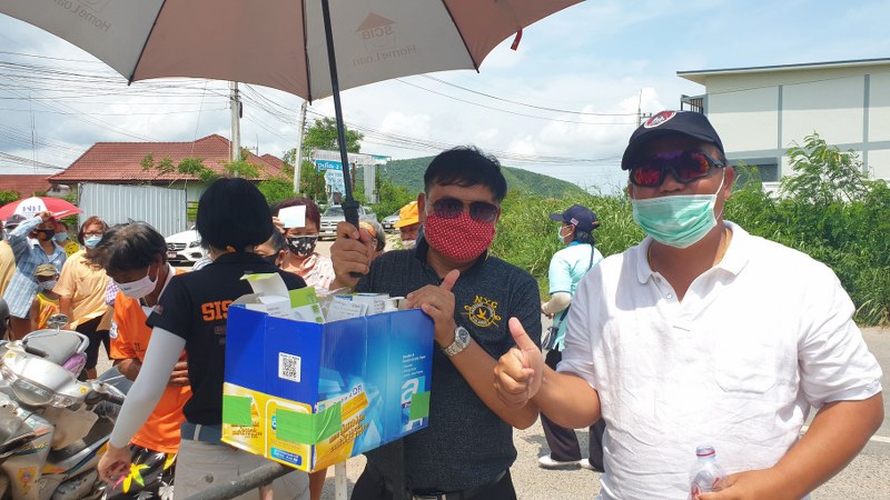 วันนี้ 11 พ.ค.63 ที่ร้านอาหารสไมล์เฮ้าส์ บ้านโชคชัย 4 ม.9 ต.สัตหีบ อ.สัตหีบ จ.ชลบุรี น.อ.เชาว์ และคุณยุพินทอง ทิมรอด เจ้า ของโครงการหมู่บ้านโชคชัย นายยศวัฒน์ ภูวรัตน์เลิศคุณ ผู้บริหารโครงการหมู่บ้านมิรันดา น้ำดื่มไอเพียว บริษัท ข้าวขวัญกมล จำกัด กลุ่มไปด้วยกันไปได้ไกล และเพื่อนๆ ได้ร่วมกันแจกข้าวสาร อาหารแห้ง ปลากระป๋อง มาม่า ให้กับผู้ที่ได้รับผลกระทบจากพิษไวรัส โควิด 19 ให้สามารถสู้ชีวิตอยู่ได้ในช่วงภาวะวิกฤติเช่นนี้ โดยมีการจัดระเบียบตามที่กระทรวงสาธารณะสุขกำหนดไว้อย่างเคร่งครัด จาก จนท.ตร.สภ. สัตหีบ จนท.เทศกิจ และ จนท.จากกองสาธารณะสุข เทศบาลตำบลเขตรอุดมศักดิ์ ผู้นำชุมชนและผู้ใหญ่บ้านในพื้นที่ ได้ร่วมกันจัดระเบียบ ระยะห่าง วัดไข้ ล้างมือด้วยเจลแอลกอฮอล์ เพื่อคัดกรองการเข้ารับสิ่งของตามระเบียบของกระทรวงสาธารณะสุขอย่างใกล้ชิด