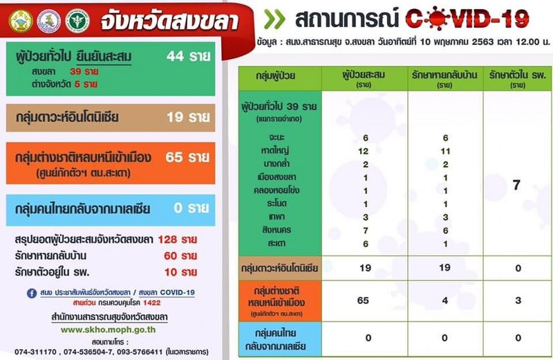 สถานการณ์ COVID – 19 จังหวัดสงขลาประจำวันที่ 10 พฤษภาคม 2563