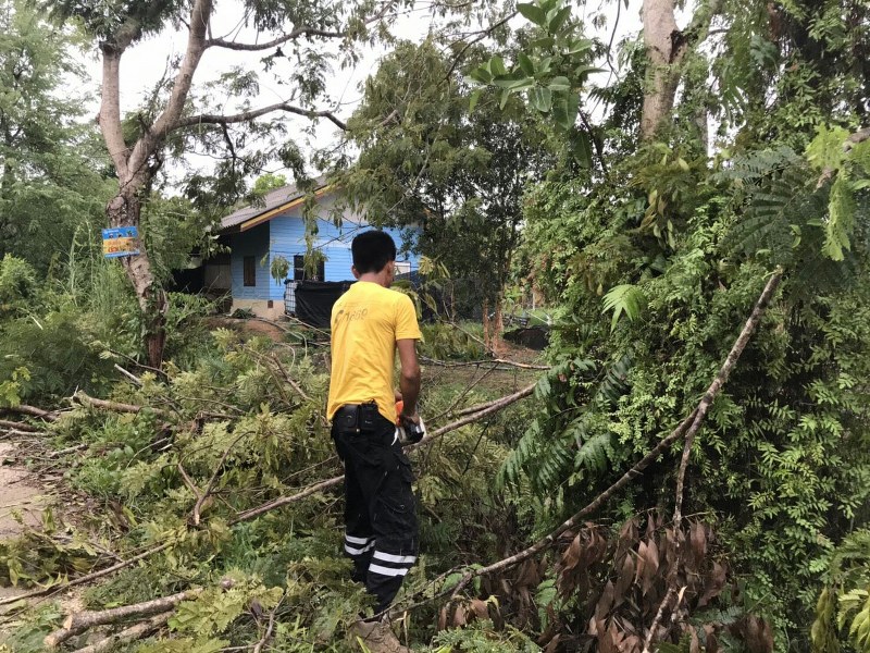 เหตุการณ์ดังกล่าวเกิดขึ้นเมื่อเวลาประมาณ 16.00 น.ของวันที่ 11 พ.ค. 63 ศูนย์วิทยุสมาคมตราดพุทธสงเคราะห์ (หน่วยกู้ภัยหลักเกาะ)ได้รับแจ้งจากพลเมืองดีว่า เกิดเหตุพายุพัดต้นไม้หักโค่นหลายต้นพาดทับสายไฟฟ้าแรงสูงจนเป็นเหตุทำให้เสาไฟฟ้าหักโค่นตามมาจำนวน 3 ต้นและเกิดหม้อแปลงระเบิดอีกด้วย บริเวณบ้านหนองโสน ระหว่าง หมู่ 2 และหมู่ 3 ต.หนองโสน อ.เมือง จ.ตราด หลังรับแจ้งจึงประสานเจ้าหน้าที่หน่วยกู้ภัยหลักเกาะรุดไปตรวจสอบ พร้อมเลื่อยยนต์และรถอุปกรณ์ เมื่อมาถึงที่เกิดเหตุ พบต้นไม้ล้มขวางอยู่กลางถนน มีขนาดใหญ่และพาดสายไฟฟ้าแรงสูงอยู่จึงได้ประสานการไฟฟ้าตราดให้ส่งเจ้าหน้าที่มาทำการตัดไฟฟ้า หลักจากนั้น เจ้าหน้าที่หน่วยกู้ภัยหลักเกาะจึงได้ช่วยกันใช้เลื่อยยนต์ตัดต้นไม้ออก เพื่ออำนวยความสะดวกให้ทำการติดตั้งเสาไฟฟ้าแทนที่หักโค่นลงมาดังกล่าว