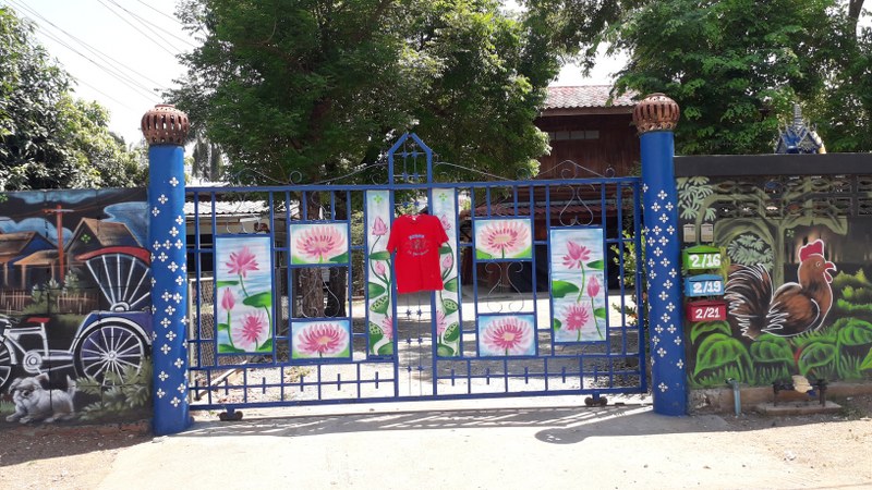 สุโขทัย-ชาวบ้านกรอกหางคลอง อ.สวรรคโลก จ.สุโขทัย พร้อมใจนำเสื้อแดงแขวนหน้าบ้านเพื่อขับไล่โรคห่ากินคน(โรคโควิด-19)