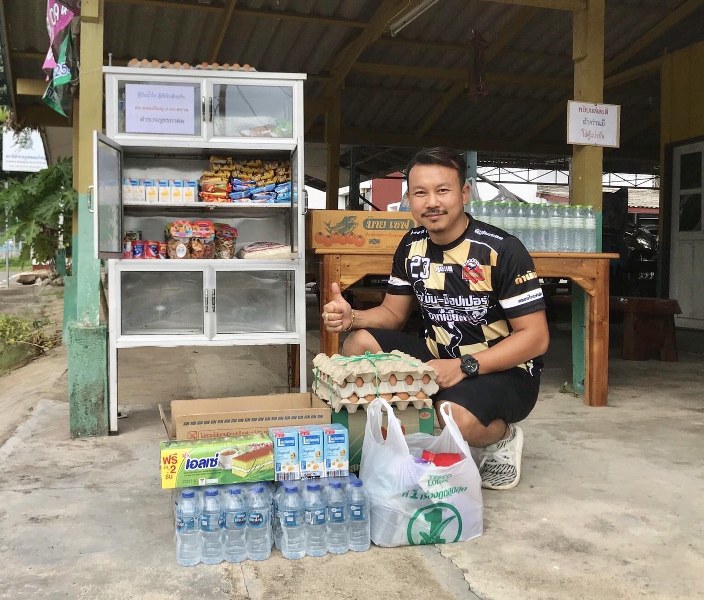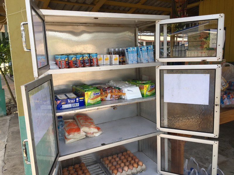 พร้อมกันนี้ยังมีทีมผู้ใหญ่บ้านหมู่ 5 บ้านคลองสน ได้มีการแบ่งปั่นมีนํ้าใจสู้ภัยโควิดได้นําเอามาม่าปลากระป๋องและนํ้าดื่มมามอบให้อีกด้วยและทุกๆวันจะมีข้าวกล่องมาวางไว้ให้อีกวันล่ะ 50 กล่อง โดยจะเอาข้าวกล่องมาวางไว้ในเวลาบ่าย 3 โมงครึ่งทุกวัน โดยจะมีผู้ที่อยากแบ่งปั่นให้กับผู้ที่ได้รับความเดือดร้อน เนื่องจากผลกระทบโควิด ทางเจ้าที่ตํารวจพร้อมมอบนโยบายในการป้องกันตัวเองด้วยในการสวมหน้ากากอนามัยมาทุกครั้งด้วย โดยที่จะให้ผู้ที่อยากร่วมแบ่งปันให้นำสิ่งของมาใส่ไว้ในตู้ดังกล่าวได้ตลอดทั้งวัน ส่วนผู้ที่เดือดร้อนก็จะสามารถมาหยิบของในตู้ไปได้เลยคนละ 1 อย่าง