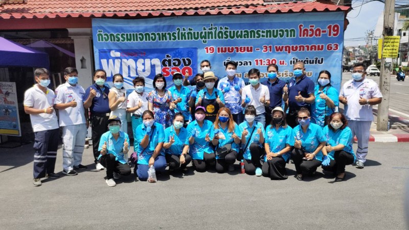 เมื่อเวลา 11.00 น. ของวันที่ 12 พฤษภาคม ที่ร้านอาหารเรือนไทย สาย 2 พัทยา ได้มีภาคเอกชนและภาครัฐ หลายองค์กร อาทิ การท่องเที่ยวเมืองพัทยา, สมาคมธุรกิจท่องเที่ยวเมืองพัทยา, สมาคมโรงแรมไทยภาคตะวันออก, ชมรมร้านอาหารเมืองพัทยา, ชมรมเชฟจิตอาสา บูรพาตะวันออก, ชมรม foma Pattaya, ชมรมนักบริหารงานอาหารและเครื่องดื่มมืออาชีพเมืองพัทยา, สมาคมผู้บริหารงานอาหารและเครื่องดื่มภาคตะวันออกแห่งประเทศไทย, ชมรมร้านอาหารเมืองพัทยา, สมาคมแหล่งท่องเที่ยวจังหวัดชลบุรี, บริษัท ทิพย์มณีเคเบิลทีวี, สมาคมเซฟ เมืองพัทยาและชายฝั่งทะเลตะวันออก, ชมรมสปา เมืองพัทยา, และกลุ่มคลับเต็มใจ ร่วมจัดตั้งโรงทานเพื่อแจกจ่ายอาหารแก่ประชาชน ตั้งแต่วันที่ 19 มษายน จนถึงวันที่ 31 พฤษภาคม โดยจัดทำอาหาร ในโครงการพัทยาต้องรอด โดยการแจกอาหาร ให้แก่ประชาชน วันนี้เป็นการแจกวันที่ 24 โดยในการแจกได้แจกมามากกว่าครึ่งทางแล้ว