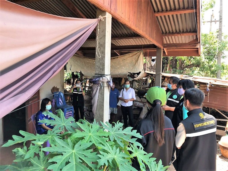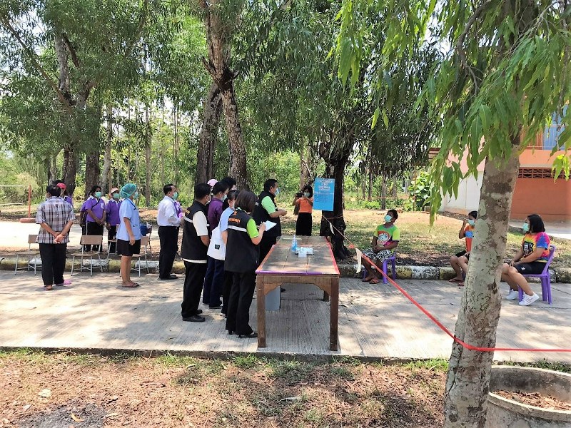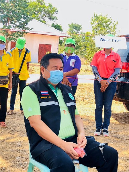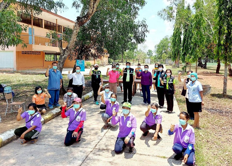 - และจุดที่สี่ ตรวจเยี่ยมให้กำลังใจผู้กักกันโรคในท้องถิ่น Local Quarantine ที่โรงเรียนบ้านโพนตูมหนองแสง ตำบลนาหัวบ่อ อำเภอโพนสวรรค์
