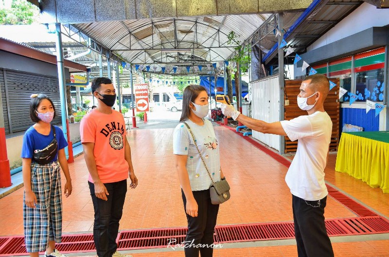 โดยมีมาตรการสำหรับประชาชนที่จะเข้ามาภายในวัด จะมีเจ้าหน้าที่ของทางวัดคอยตรวจวัดอุณภูมิและให้เซ็นชื่อก่อนเข้าวัดหลวงพ่อปากแดง ส่วนตลาดโรงเกลือวัดหลวงพ่อปากแดงก็เปิดให้ประชาชนเข้ามาจับจ่ายซื้อของได้แล้ว โดยมีการตรวจวัดอุณภูมิและเซ็นชื่อ เว้นระยะห่างกัน ตามมาตรการของจังหวัดนครนายก