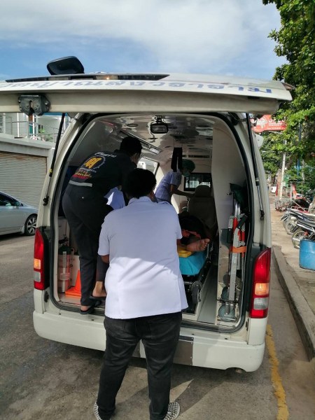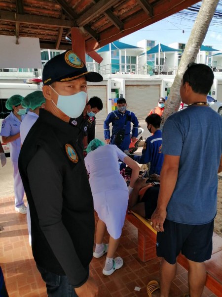 หลังรับแจ้ง ศรชล.จังหวัดชลบุรี และ ศคท.จังหวัดชลบุรี ได้ประสานศูนย์ควบ คุมการแจ้งเข้า-ออกเรือประมงชลบุรี และหน่วยงานในพื้นที่ ต.บางเสร่ อ.สัตหีบ จ.ชลบุรี นำตัวผู้เจ็บป่วยขึ้นฝั่งที่ท่าเรือสะพานปลารัฐวิสาหกิจชุมชน ต.บางเสร่ และจัดรถพยาบาลฉุกเฉิน พร้อมเจ้าหน้าที่พยาบาล รับตัวผู้ป่วยนำส่งโรงพยาบาลวัดญาณสังวรวรารามวรมหา วิหาร เข้ารับการรักษาพยาบาลต่อไป