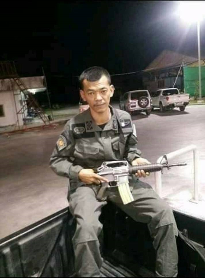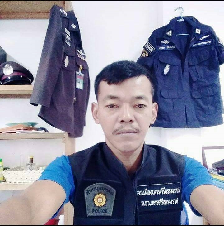 นายขจรศักดิ์ หรือ อส.ตร.กุ้ง ผู้ต้องหา ซึ่งยังอยู่ในอาการโศกเศร้ากับสิ่งที่เกิดขึ้น ได้ให้การ ตนมีอาชีพช่างซ่อมรถจักรยานยนต์ โดยเช่าบ้านที่เกิดเหตุเปิดร้านซ่อมรถจักรยานยนต์ นอกจากนี้ยังทำหน้าที่ช่วยเหลือสังคม เป็น อส.ตร. สภ.เมืองนครศรีธรรมราช ที่ผ่านมาตนออกตรวจร่วมกับตำรวจ ทั้งกวาดล้างและจับกุมผู้ต้องหาเป็นจำนวนมาก ทั้งคดียาเสพติด คดีอาวุธปืน ส่วนบ้านเกิดเหตุตนอาศัยเพียงคนเดียว ส่วนภรรยาและลูกอาศัยบ้านอีกหลังภายในซอยหัวหลาง ก่อนเกิดเหตุตนกลับจากออกตรวจความสงบในเขตเมืองร่วมกับตำรวจ และกลับเข้าบ้านช่วงเที่ยงคืน กระทั้งเวลาประมาณ 02.00 น.ขณะนอนหลับอยู่ในบ้านพบว่ามีรถจักรยานยนต์ขับมาจอดข้างบ้าน และมีเสียงผิดปกติบริเวณหน้าต่างคล้ายคนกำลังงัด เนื่องจากก่อนหน้านี้ไม่กี่วันตนร่วมกับตำรวจ จับผู้ต้องหาคดีพกอาวุธปืน และผู้ต้องหารายนี้กล่าวอาฆาตข่มขู่ตน ตั้งแต่นั้นมาช่วงกลางดึกที่บ้านของตนจะถูกคนร้ายไม่ทราบเป็นใครขวางปาก้อนหิน ขวดเบียร์ใสบ้านแล้วหลายครั้ง หลังจากนั้นตนเริ่มระวังตัวมากขึ้น