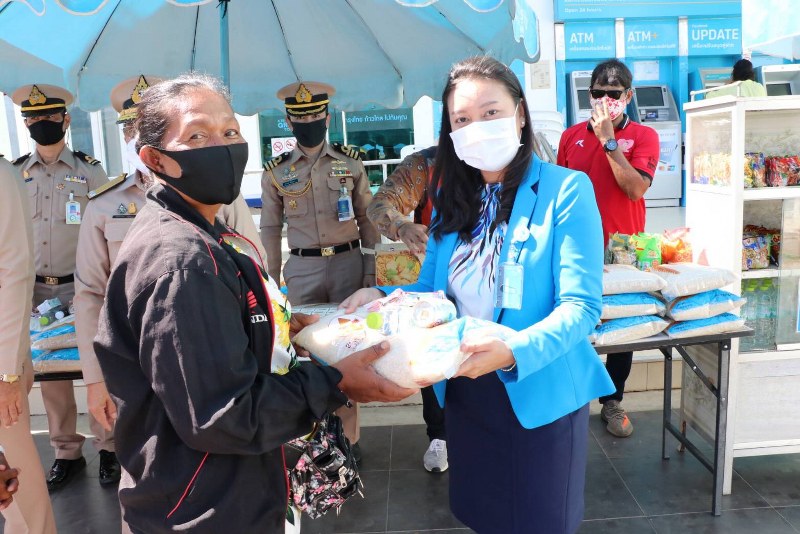 และในเวลา 14.00 น. พลเรือตรีสุทธิชาติ เข็มอนุสุข รองผู้บัญชาการทัพเรือภาคที่1 คุณสุนันท์ สมานรักษ์ ประธานชมรมภริยาทหารเรือทัพเรือภาคที่ 1 นายอนุชา อินทศร นายอำเภอสัตหีบ คุณระพี ถาวร ผู้จัดการสาขาอาวุโส ธนาคารกรุงไทย สาขาสัตหีบ และคณะลงพื้นที่ให้กำลังใจ พี่น้องประชาชนชาวอำเภอสัตหีบ มอบข้าวสาร 5 กิโลกรัม พร้อมสิ่งของจำเป็น ในการดำรงชีวิตสร้างขวัญกำลังใจในการกลับมาประกอบอาชีพอีกครั้ง หลังจากมาตราการต่างๆ ได้รับการผ่อนปรน ณ ตู้ปันสุข บริเวณหน้าที่ว่าการอำเภอสัตหีบ และธนาคารกรุงไทย สาขาสัตหีบ