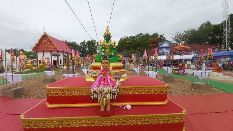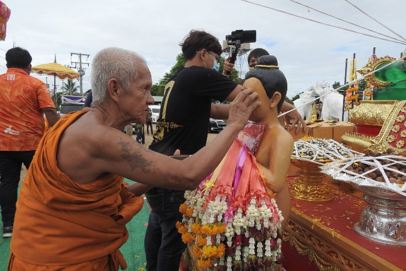 โดยพิธีเริ่มจากศิษยานุศิษย์และเหล่าศิลปินดารา ได้ร่วมตอกไม้มงคลรอบฐานสำหรับสร้างพระอุโบสถม จากนั้นนายสุชาติ ทีคะสุข รองผู้ว่าราชการจังหวัดสุโขทัย เป็นประธานจุดธูปเทียนบูชาม พระเกจิคณาจารย์ 11 รูป นั่งปรกอธิษฐานจิต ปลุกเสก กุมารไอ้ไข่ม