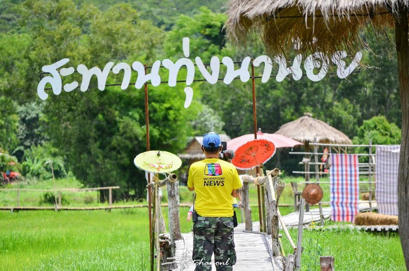 ที่จังหวัดนครนายก สะพานทุ่งนาน้อย หมู่ที่ 11 ตำบลสาริกา อำเภอเมือง จังหวัดนครนายก คุณโสภา-คุณประทีป กางกอง พร้อมลูกๆได้เปิดแลนด์มาร์ค ในพื้นทีของตังเองเพื่อทำเป็นแหล่งท่องเที่ยวอีกแห่งหนึ่งในจังหวัดนครนายก ที่อยู่ติดกับเขาหล่นผจญภัยสาริกา ซึ่งสะพานทุ่งนาน้อยมีบรรยากาศรายล้อมไปด้วยทุ่งนา-ภูเขาและทุ่งหญ้ากว้างใหญ่ เป็นแหล่งท่องเที่ยวที่ใกล้กรุงเทพ มีอากาศโอโซนบริสุทธิ์ และมีสะพานทุ่งนาน้อยเป็นสะพานไม้ไผ่มีความยาวกว่า 300 เมตร พาดผ่านทุ่งนาที่เขียวขจี มีภูเขาสูงโอบรอบรอบอย่างสวยงาม พร้อมมีมุมถ่ายภาพเก็บความประทับใจ ชมการสะสมของเก่าโบราณ และสนุกกับการนั่งรถแทรกเตอร์ลากเลื่อน ที่จะพาเที่ยวชมบรรยากาศภายในทุ่งนาน้อย และไฮไลด์ของทุ่งนาน้อยได้ประดิษฐ์รถบรรทุกลอยฟ้าแบบใช้เครื่องชักลอกเพื่อนำไปส่งอาหารให้กับนักท่องเทียวที่เข้ามาพักผ่อนในทุ่งนาน้อยอีกด้วย