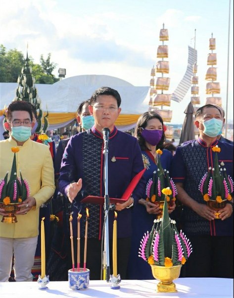 นายชาตรี จันทร์วีระชัย รองผู้ว่าราชการจังหวัดนครพนม ประธานในพิธีจึงได้นำคณะหัวหน้าส่วนราชการเจ้าหน้าที่ ทั้งในระดับจังหวัด ระดับอำเภอ ตลอดจนประชาชนและนักท่องเที่ยว เชิญเครื่องบูชามาประกอบพิธีบวงสรวงพญาศรีสัตตนาคราชพร้อมกับขบวนนางรำกว่า 100 ชีวิตจาก 2 อำเภอ ได้แก่อำเเภอปลาปาก และอำเภอศรีสงคราม ที่มารำถวายด้วยท่วงท่าอันอ่อนช้อยและงดงาม ในส่วนของกิจกรรมที่มีความเสี่ยงของความแออัด เช่น โรงทาน ในปีนี้ทางจังหวัดได้งดเว้นไม่ให้มี รวมไปถึงงดการออกบูธจำหน่ายสินค้าต่าง ๆ แต่ให้ร้านค้า สถานประกอบการและโรงแรมที่พักจัดโปรโมชั่นร่วมในกิจกรรม “นครพนมปันสุข” ซึ่งเป็น การพร้อมใจกันลดราคาสินค้า 4 กลุ่ม ตั้งแต่ 7-77% เพื่อเป็นการกระตุ้นยอดการขายแทน