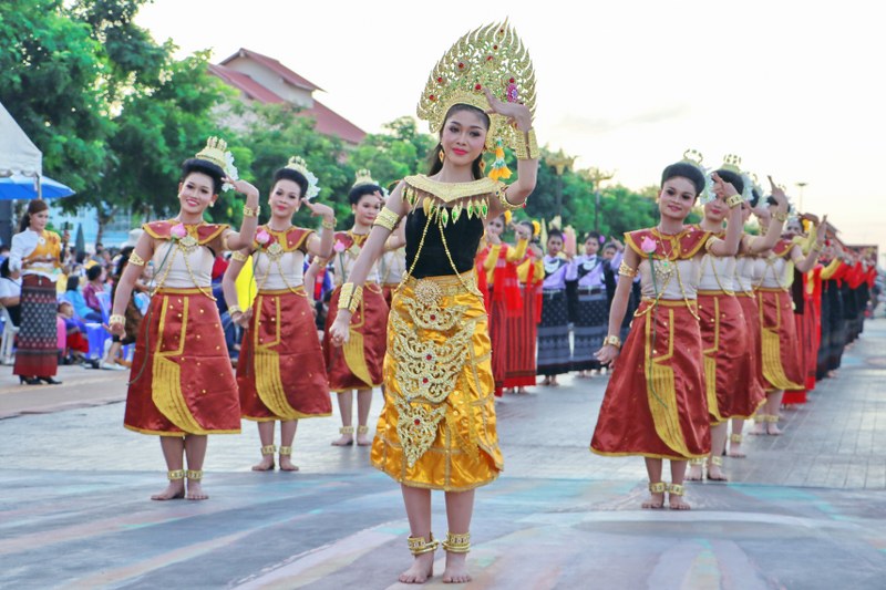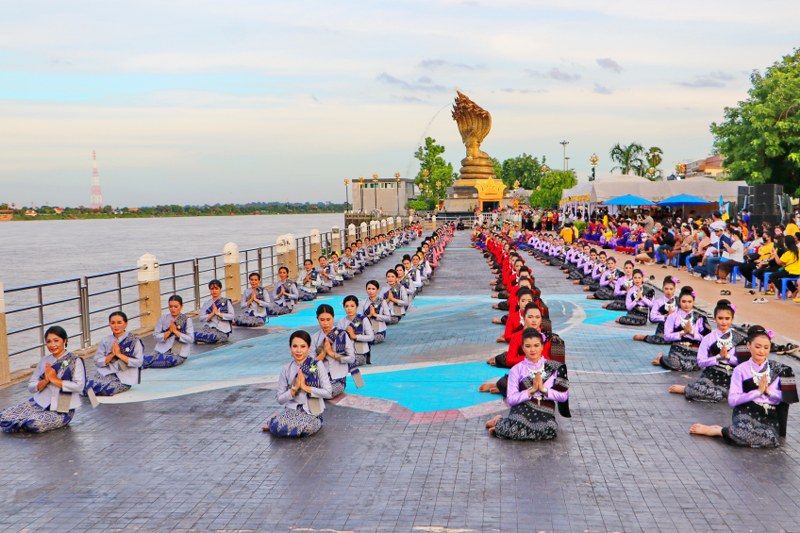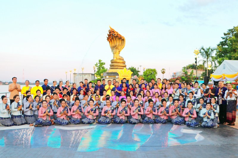 นครพนม วันที่ 2 งานบวงสรวงพญาศรีสัตตนาคราช รวมพลคนเกิดวันพุธ นางรำร้อยชีวิตจาก 2 อำเภอตามวิถีNew Normal