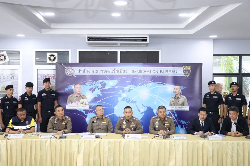 วันนี้ วันอังคารที่ 9 กรกฎาคม 2562 เวลา 10.30 น.ณ ห้องแถลงข่าวชั้นล่างอาคารจอดรถ บช.สตม.สวนพลู : พลตำรวจโท สมพงษ์ ชิงดวง รักษาราชการแทนผู้บัญชาการสำนักงานตรวจคนเข้าเมือง (รรท.ผบช.สตม.) พร้อมด้วย พลตำรวจตรี อิทธิพล อิทธิสารรณชัย,พลตำรวจตรี สรายุทธ สงวนโภคัย รองผู้บัญชาการสำนักงานตรวจคนเข้าเมือง (รองผบช.สตม.),พลตำรวจตรี พนัญชัย ชื่นใจธรรม ผู้บังคับการกองบังคับการสืบสวนสอบสวน กองบัญชาการสำนักงานตรวจคนเข้าเมือง (ผบก.สส.บช.สตม.),พันตำรวจเอก วิญญู อำนวยสมบัติ รองผู้บังคับการสืบสวนสอบสวนกองบัญชาการสำนักงานตรวจคนเข้าเมือง (รองผบก.สส.บช.สตม.)