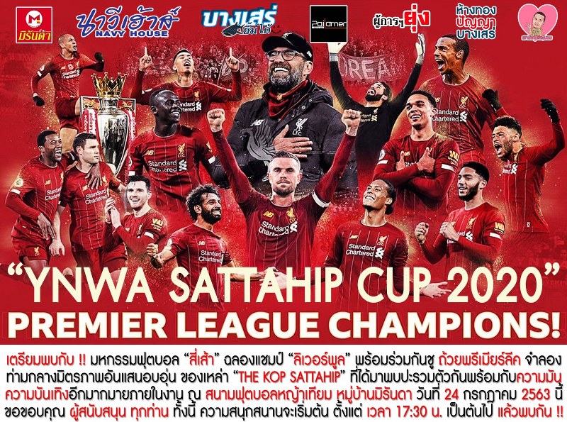 แฟนบอลสัตหีบเตรียมสวมเสื้อแดงร่วมฉลองแชมป์ ลิเวอร์พูล ในฟุตบอล 4 เส้า “ YNWA SATTAHIP CUP 2020” โดยไฮไลต์ของงาน นายอำเภอสัตหีบ จะมอบถ้วยแชมป์พรีเมียลีก(จำลอง) ให้กับแฟนบอล ลิเวอร์พูลในพื้นที่ อ.สัตหีบ ที่มาร่วมงานทั้งหมด