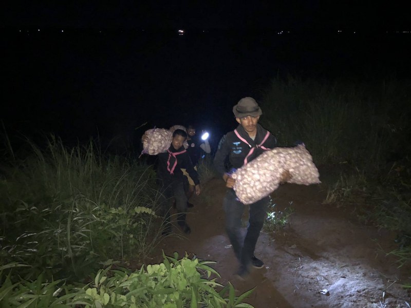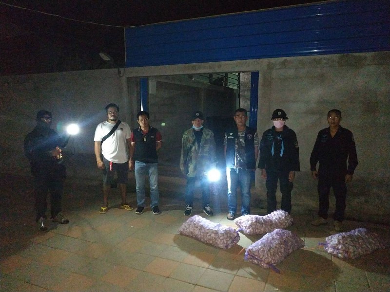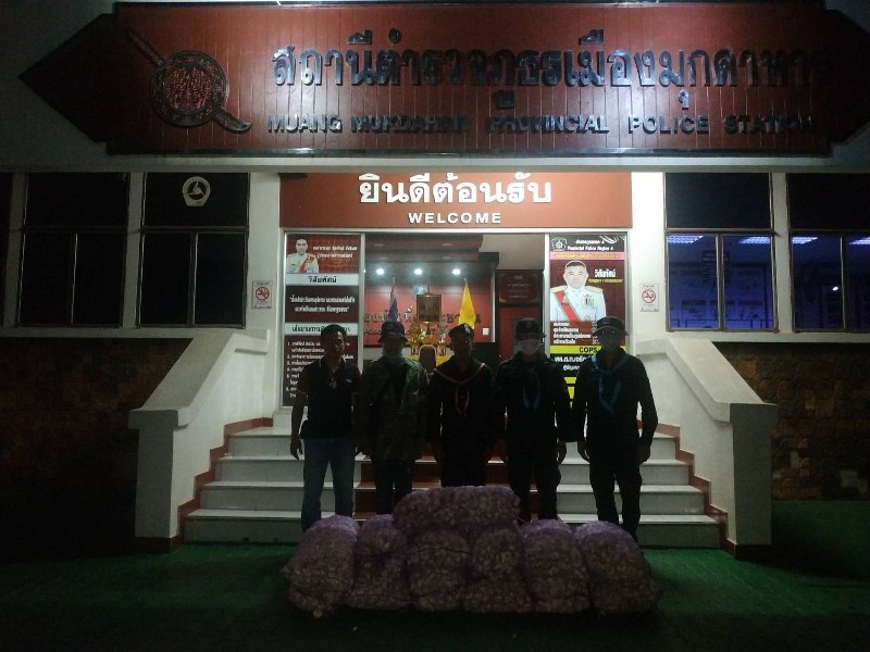 เจ้าหน้าที่จึงได้ตรวจสอบพื้นที่โดยรอบ ตรวจพบกระเทียมแห้ง วางกระจัดกระจายอยู่บริเวณบันไดทางขึ้นริมฝั่งแม่น้ำโขง จำนวน 10 กระสอบน้ำหนัก 200 กิโลกรัม หน่วย ฯ จึงได้ร่วมทำการตรวจยึดของกลาง และนำของกลางทั้งหมดกลับมายังฐานปฏิบัติการ ชป.คทร.ฉก. ทพ.22 ร้อย.ทพ.2107 บ.บุ่งอุทัย ม.10 ต.นาสีนวน อ.เมือง จว.มุกดาหาร