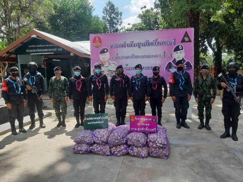 มุกดาหาร # ร้อย.ทพ.2107 ยึดกระเทียม เถื่อน 2 ท่า 23 กะสอบ 460 กก. ขณะลาดตระเวนตามแนวชายแดนริมฝั่งแม่น้ำโขง จึงได้ร่วมทำการตรวจยึดของกลาง และนำของกลางทั้งหมดกลับมายังฐานปฏิบัติการ ชป.คทร.ฉก. ทพ.22 ร้อย.ทพ.2107 บ.บุ่งอุทัย ม.10 ต.นาสีนวน อ.เมือง จว.มุกดาหาร