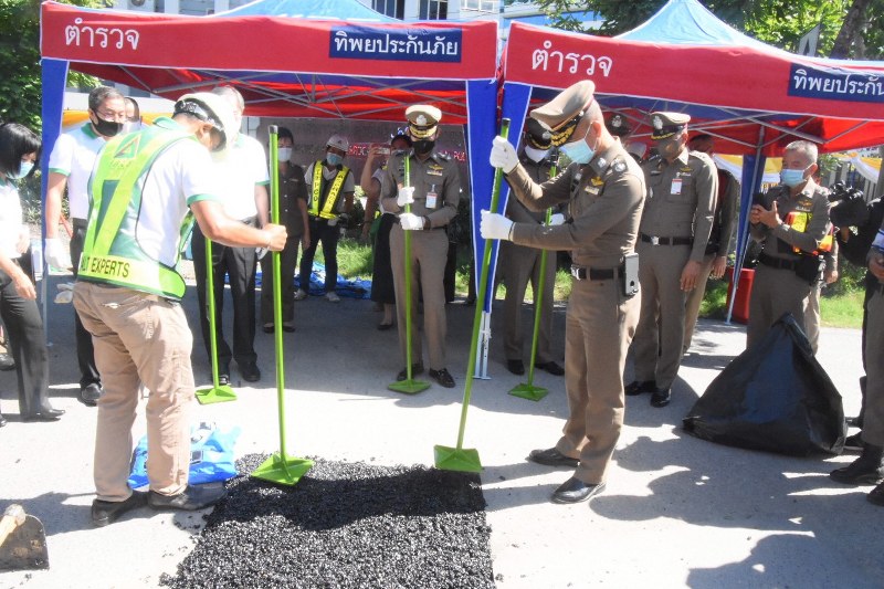 รองจิรสันต์ เปิด “โครงการหมอถนนซ่อมผิวจราจร” ซึ่งได้รับการสนับสนุนจาก บจม.ทิปโก้แอสฟัลท์โดยมีข้าราชการตำรวจ และหน่วยงานที่เกี่ยวข้องเข้าร่วมพิธีในครั้งนี้