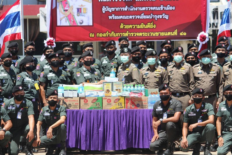 วันที่ 17 ก.ค.63 เวลา 11.30 น. : พล.ต.ท.สมพงษ์ ชิงดวง ผบช.สตม. พร้อมด้วย พล.ต.ต.สุรพงษ์ ชัยจันทร์ รอง ผบช.สตม.,พล.ต.ต.พิสิฐ ตันประเสริฐ รอง ผบช.สงป.ปฏิบัติราชการ สตม.,พ.ต.อ.เสกสิทธิ์ สุวรรณฤทธิ์ รอง ผบก.ภ.จ.ชุมพร และ พ.ต.อ.สมชาย ศรีศรยุทธ์ ผกก.ตชด.41 พร้อมคณะเดินทางมาตรวจเยี่ยม และมอบสิ่งของบำรุงขวัญให้เจ้าหน้าที่ตำรวจใช้ในราชการ และให้โอวาทกำลังพล ขอให้ตั้งใจและใช้ความระมัดระวังในการปฏิบัติหน้าที่ให้ปลอดภัยจากเชื้อไวรัสโคโรนา (โควิด 2019)