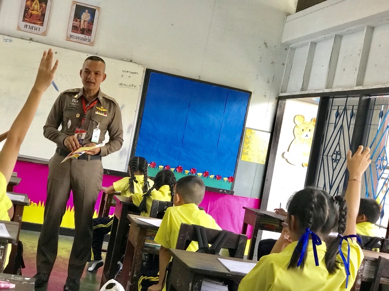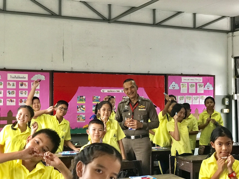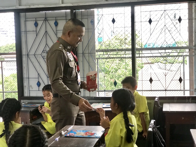 เมื่อวันอังคารที่ 9 ก.ค.62 เวลา 11.00-12.00 น.: พันตำรวจเอก เจษฎา คุ้มศาสตรา ผู้กำกับการสถานีตำรวจนครบาลพญาไท (ผกก.สน.พญาไท) และ พันตำรวจโท การุณย์ ลิมปิโรจนฤทธิ์ รองผู้กำกับการป้องกันปราบปราม สถานีตำรวจนครบาลพญาไท (รองผกก.ป.สน.พญาไท) มอบหมายให้ ร้อยตำรวจเอก เรืองยศ ขันสุวรรณ รองสารวัตรป้องกันปราบปรามสถานีตำรวจนครบาลพญาไท (รองสวป.สน.พญาไท) ครูตำรวจแดร์ให้ความรู้แก่เด็กนักเรียนชั้นประถมศึกษาปีที่ 5/1 โรงเรียนสัมมาชีวศิลป ราชเทวี จำนวน 24 คน ในโครงการ “การศึกษาเพื่อต่อต้านการใช้ยาเสพติด”