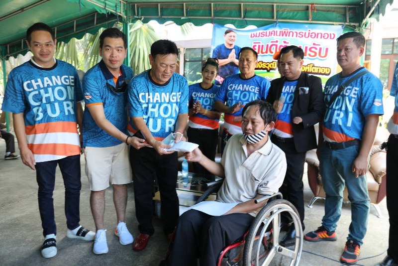 จากนั้น นายจิรวุฒิ สิงห์โตทอง พร้อมด้วย นายพายุ เนื่องจำนงค์ ได้ช่วยกันเรี่ยไรเงินจากผู้ร่วมกิจกรรมได้เงินจำนวน 68,465 บาท มอบให้ตัวแทนชมรมคนพิการบ่อทอง เพื่อนำไปใช้ในภารกิจที่จำเป็นและเกิดประโยชน์สูงสุด จากนั้นคณะแรลลี่การกุศล กลุ่ม Change Chonburi ได้เดินทางไปยังโรงเรียนบ้านธรรมรัตน์ พร้อมทั้งได้มอบเงินจำนวน 50,000 บาทให้กับนายธรรมศักดิ์ นิติ ธรรม ผู้อำนวยการโรงเรียน เพื่อนำไปใช้สนับสนุนอาหารกลางวัน นักเรียนระดับชั้นมัธยมศึกษา พร้อมได้ชูนโยบายของ กลุ่ม Change Chonburi ว่าถ้าพี่น้องชาวชลบุรี ไว้วางใจเลือกเข้าไปทำงานบริหารใน อบจ.ชลบุรี จะยกระดับมาตรฐานการศึกษาทั้งจังหวัดชลบุรี ตั้งแต่ในระดับประถม ไปจนถึงระดับมัธยมศึกษา ทุกโรงเรียนจะมีมาตรฐานการศึกษาเท่าเทียมกัน เพื่อเป็นการลดปัญหาไม่ต้องให้นักเรียนต้องเดินไปเรียนต่อในตัวเมืองเป็นการลดภาระให้ผู้ปกครอง