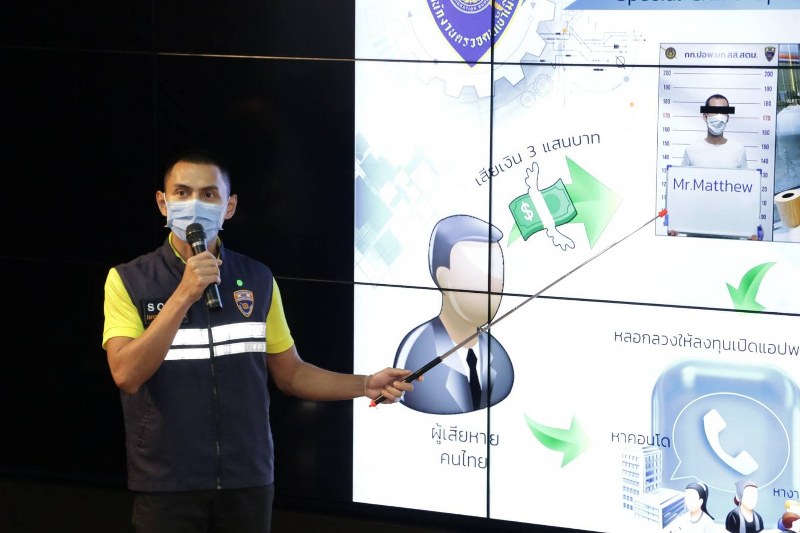 ปอพ.บก.สส.สตม.รวบต่างชาติหลอกลวงให้ลงทุนเปิดแอปพลิเคชั่น แล้วเชิดเงินหนีไป