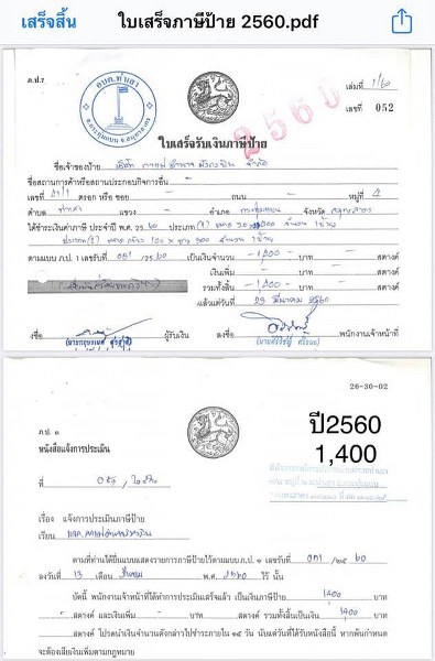 จากเคยเสียปีละ 1,400 บาท ตั้งแต่ ปี 2559 ถึง 2562