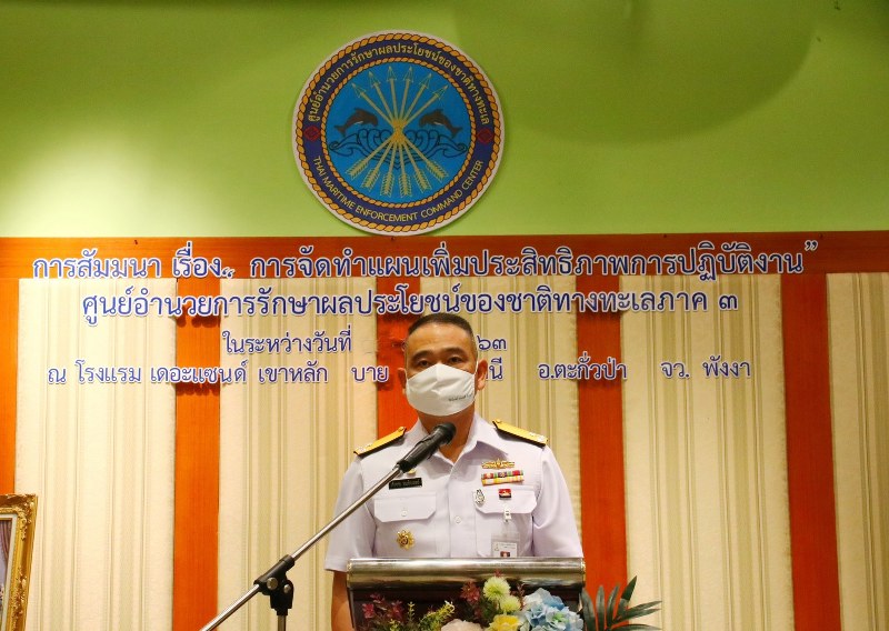 พล.ร.ท.เชิงชาย ชมเชิงแพทย์ เปิดเผยว่า ศูนย์อำนวยการรักษาผลประโยชน์ชองชาติทางทะเล(ศรชล.)จัดตั้งขึ้นตาม พ.ร.บ.การรักษาผลประโยชน์ของชาติทางทะเล พ.ศ. 2562 โดยศรชล.ภาค 3 รับผิดชอบในพื้นที่ทะเลอันดามัน ซึ่งทัพเรือภาคที่ 3 ปฏิบัติงานร่วมกับกรมประมง กรมเจ้าท่า กรมศุลกากร ตำรวจน้ำ และกรมทรัพยากรทางทะเลและชายฝั่ง ในครั้งนี้เป็นการสัมมนาเพื่อนำปัญหาต่างๆจากการปฏิบัติงานที่ผ่านมา จัดทำแผนเพิ่มประสิทธิภาพในปี 2564-65 ต่อไป และได้เชิญผู้แทนกระทรวงแรงงานเข้ามาร่วมทำแผนด้วย เนื่องจากมีความเกี่ยวข้องกับแรงงานในกิจการประมงทะเล โดยปีงบประมาณ 2564 ศรชล.ภาค3 ได้จัดตั้งหมวดเรือเฉพาะกิจขึ้น ซึ่งจะเป็นการเพิ่มความเข้มข้นในการดูแลปกป้องผลประโยชน์ของชาติทางทะเลต่อไป